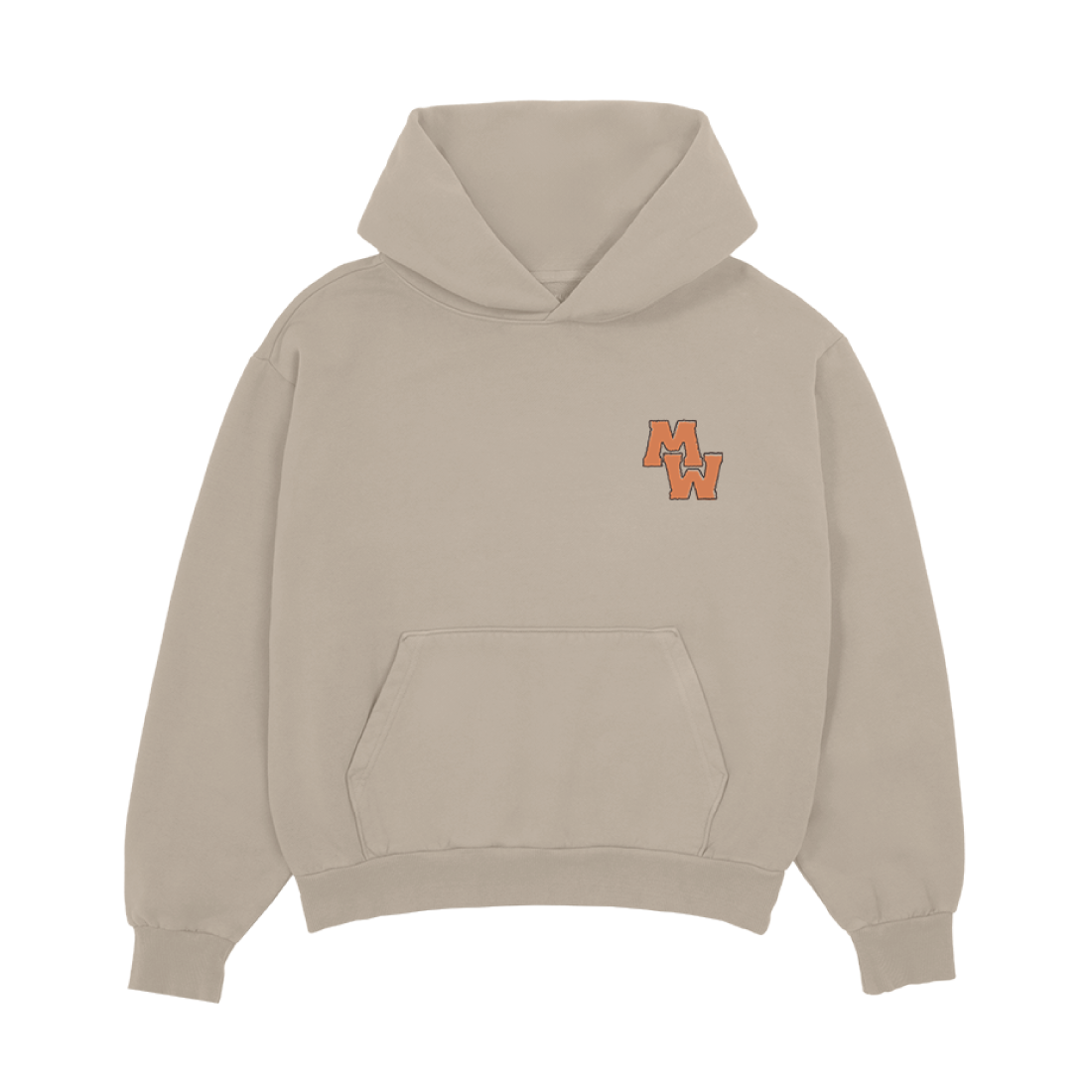 Tan hoodie featuring screen printed graphics on front and back