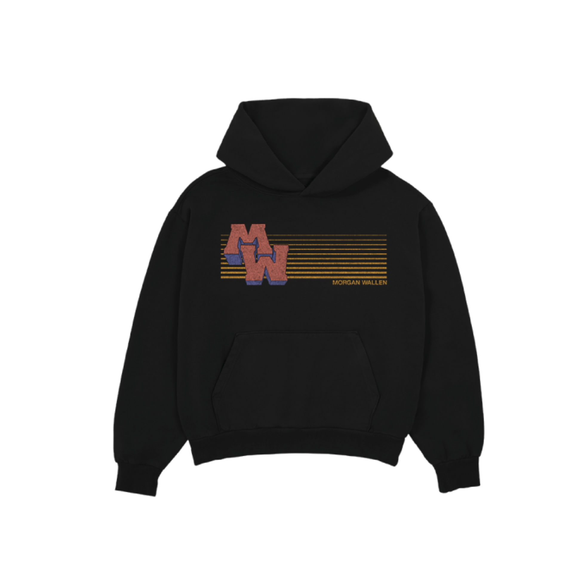 Black garment dyed hoodie featuring screen printed graphics on front and back.